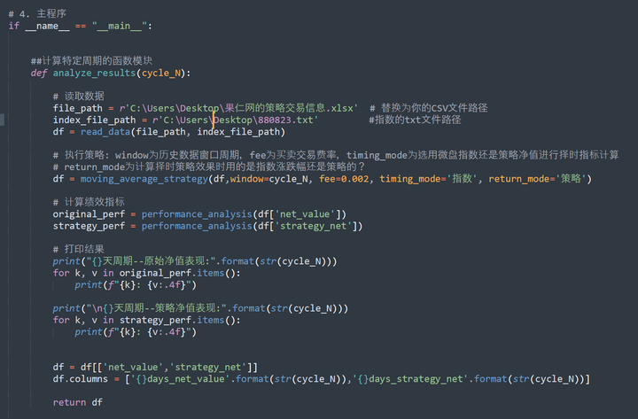 框架主要实现的功能是:读取微盘股指数和微盘股策略数据、执行回测、计算绩效指标和输出结果。
